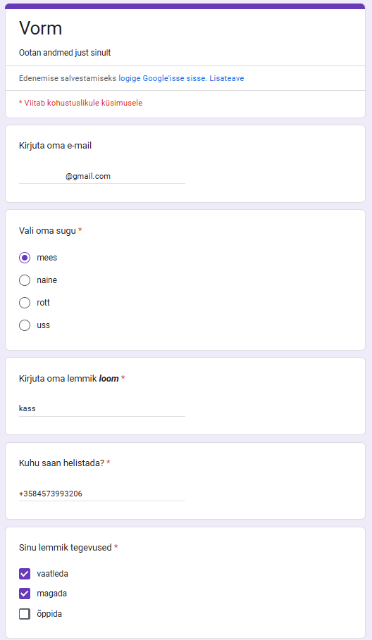 - On tehtud ilus ja oma väljadega vorm (TÄHTIS! üks väli on email)