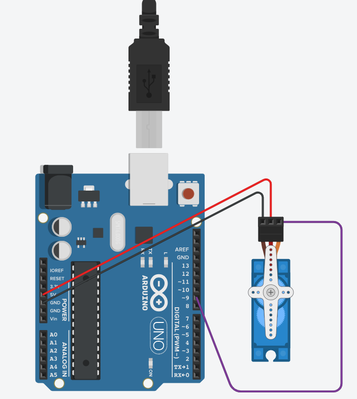 map()teisendab temperatuuri vastavaks nurgaks (0–180°) - Mootor liigub iga tsükliga ühe kraadi võrra sihtnurgale lähemale