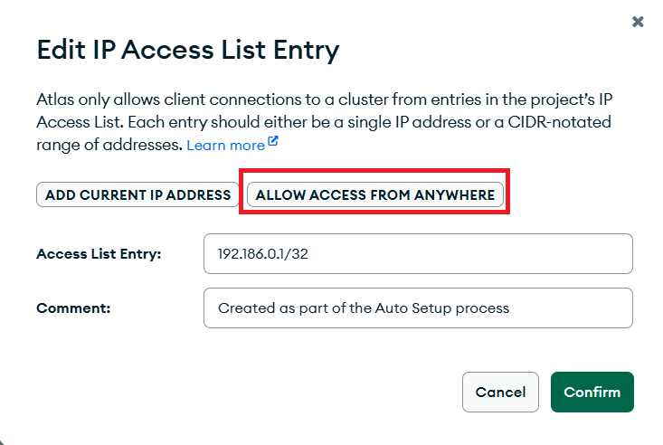 Minge võrgu juurdepääse sättesse ja luba juurdepääs igalt kohalt, et ei siduda mingi ip-addressile