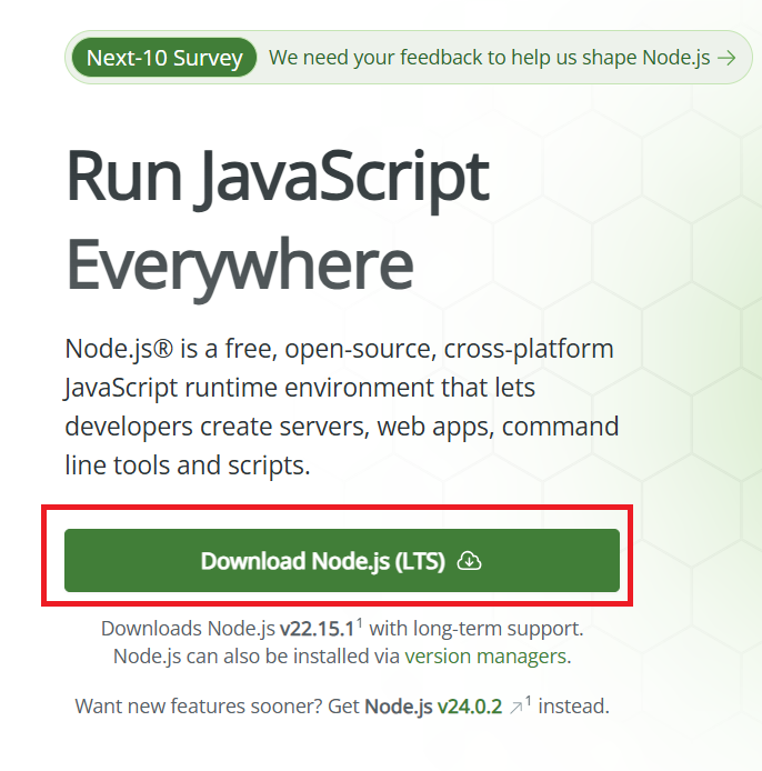 Installi endale Node.js npm-mooduliga, sellest lähe nodejs.org ja laadi alla