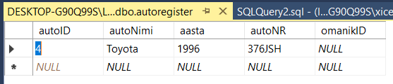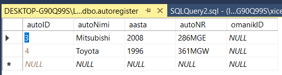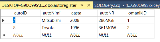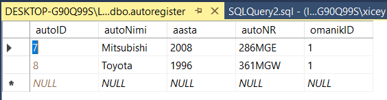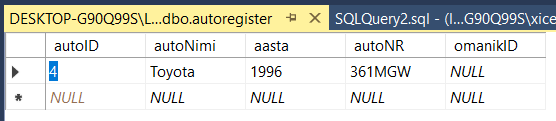 [SQL Server] Harjutus kahe tabelite seosete (on loodud tabel 'omanik')