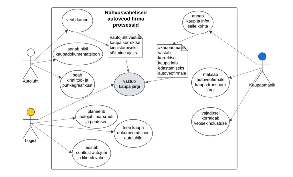 Прецеденты обозначаются внутри эллипса. Прецеденты и экторы соединяются с помощью линий или стрелок.